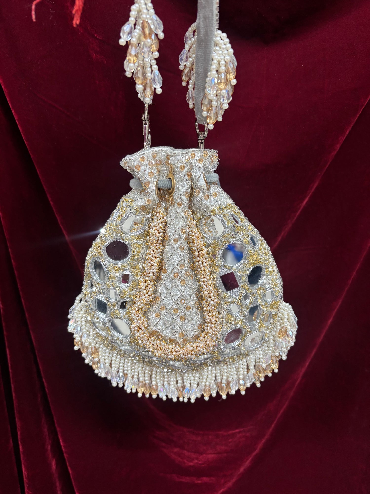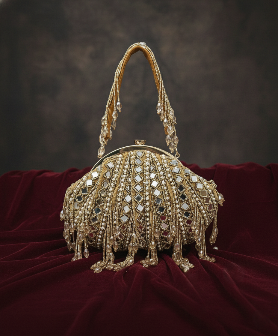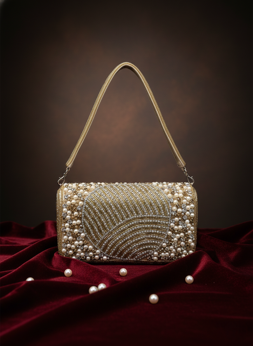 Artisan Handcrafted Pearl Work Potli – Luxury Bridal & Wedding Ethnic Clutch | Fashion Fusion India