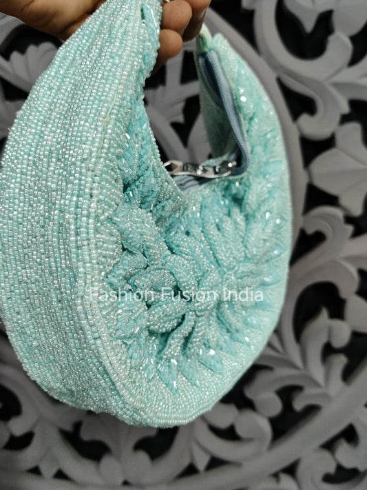 Aqua Beaded Bridal Bag – Handcrafted Wedding & Party Purse by Fashion Fusion India