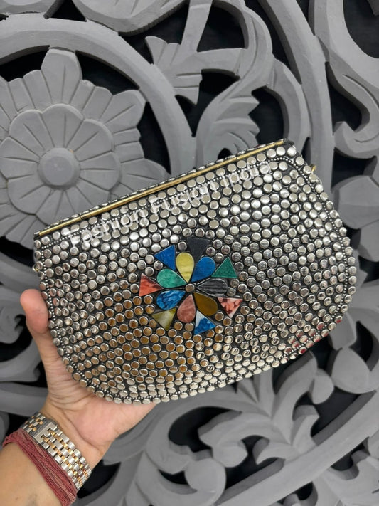 Artisan Floral Oxidised Clutch Bag – Handcrafted Ethnic Statement | Fashion Fusion India