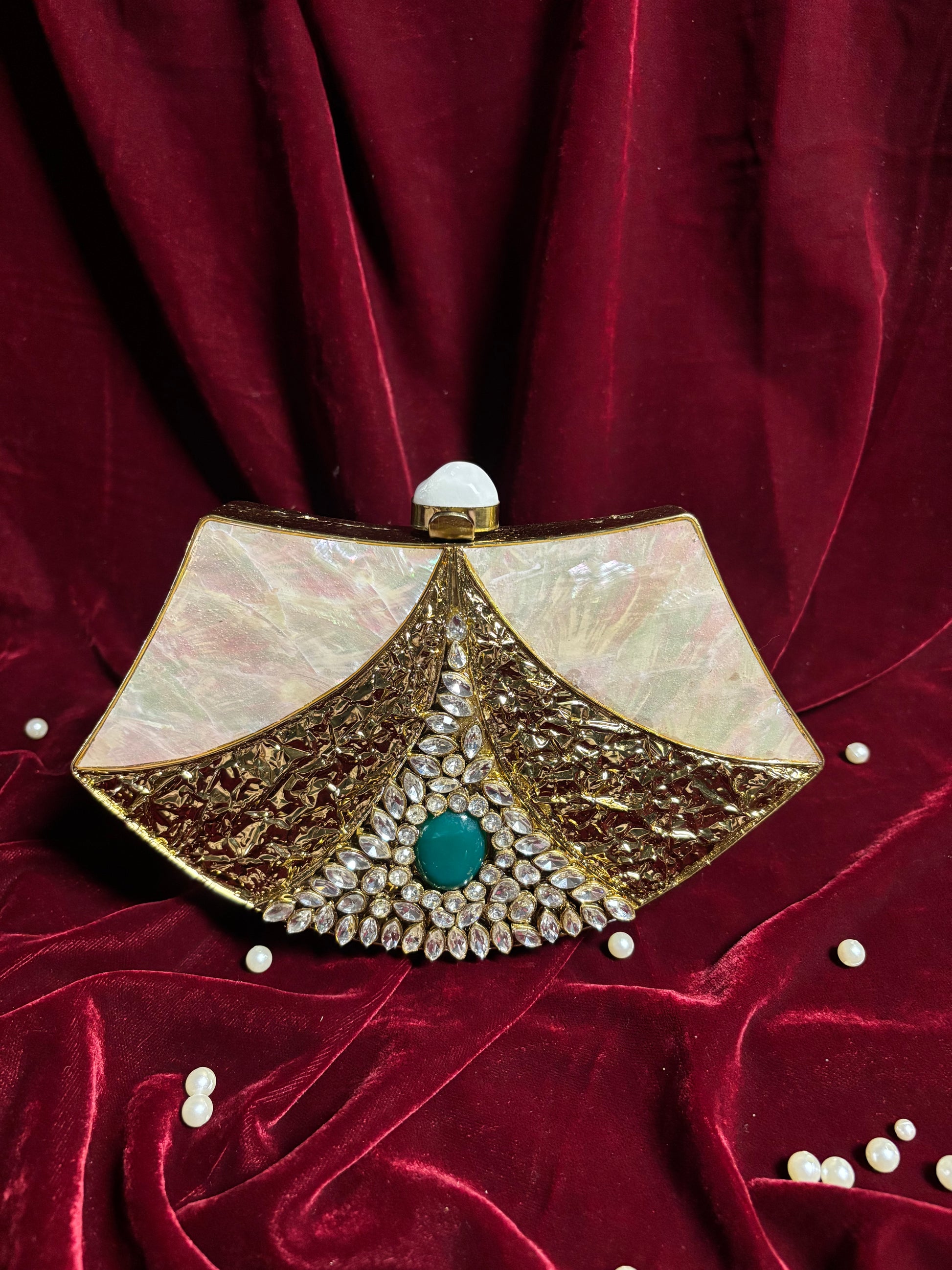 Designer Brass Stone Clutch Bag – Handcrafted Bridal & Festive Purse by Fashion Fusion India