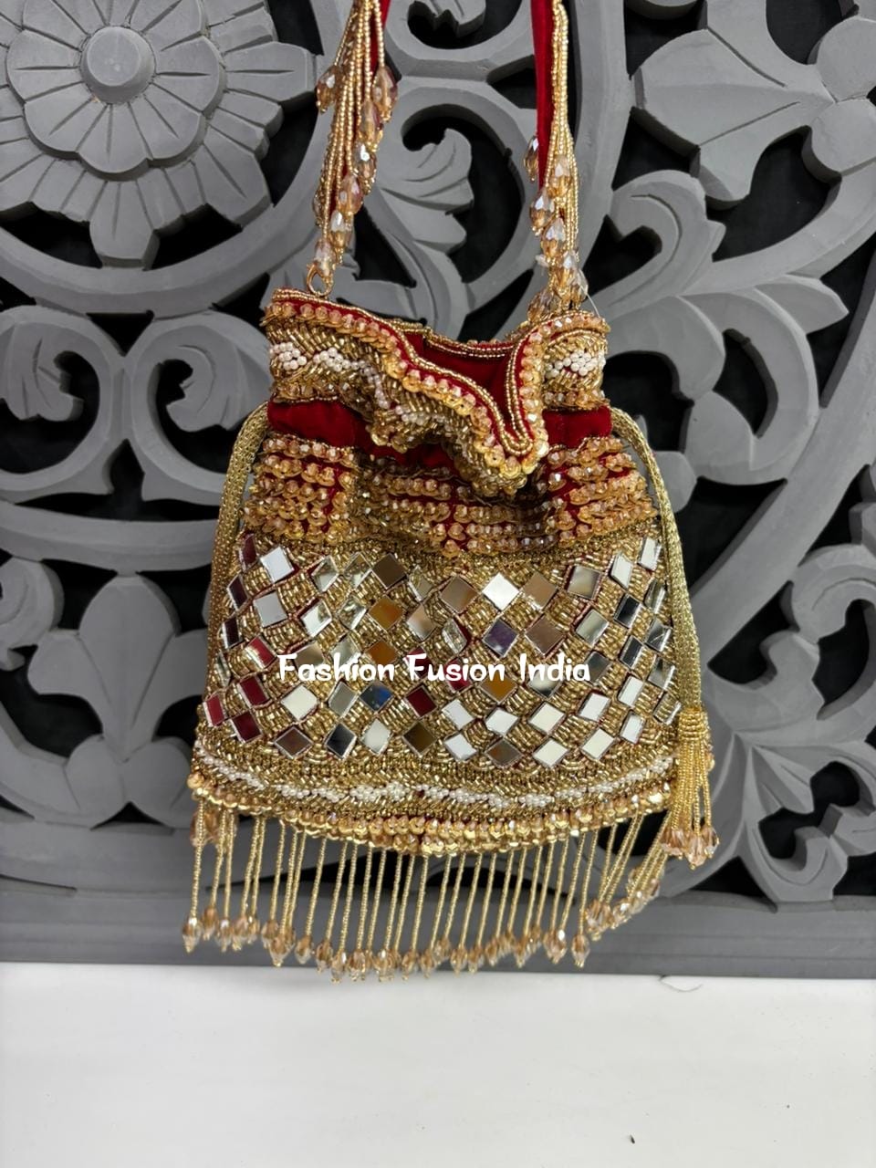 Designer Mirror Work Potli Bag – Handcrafted Bridal & Festive Purse by Fashion Fusion India