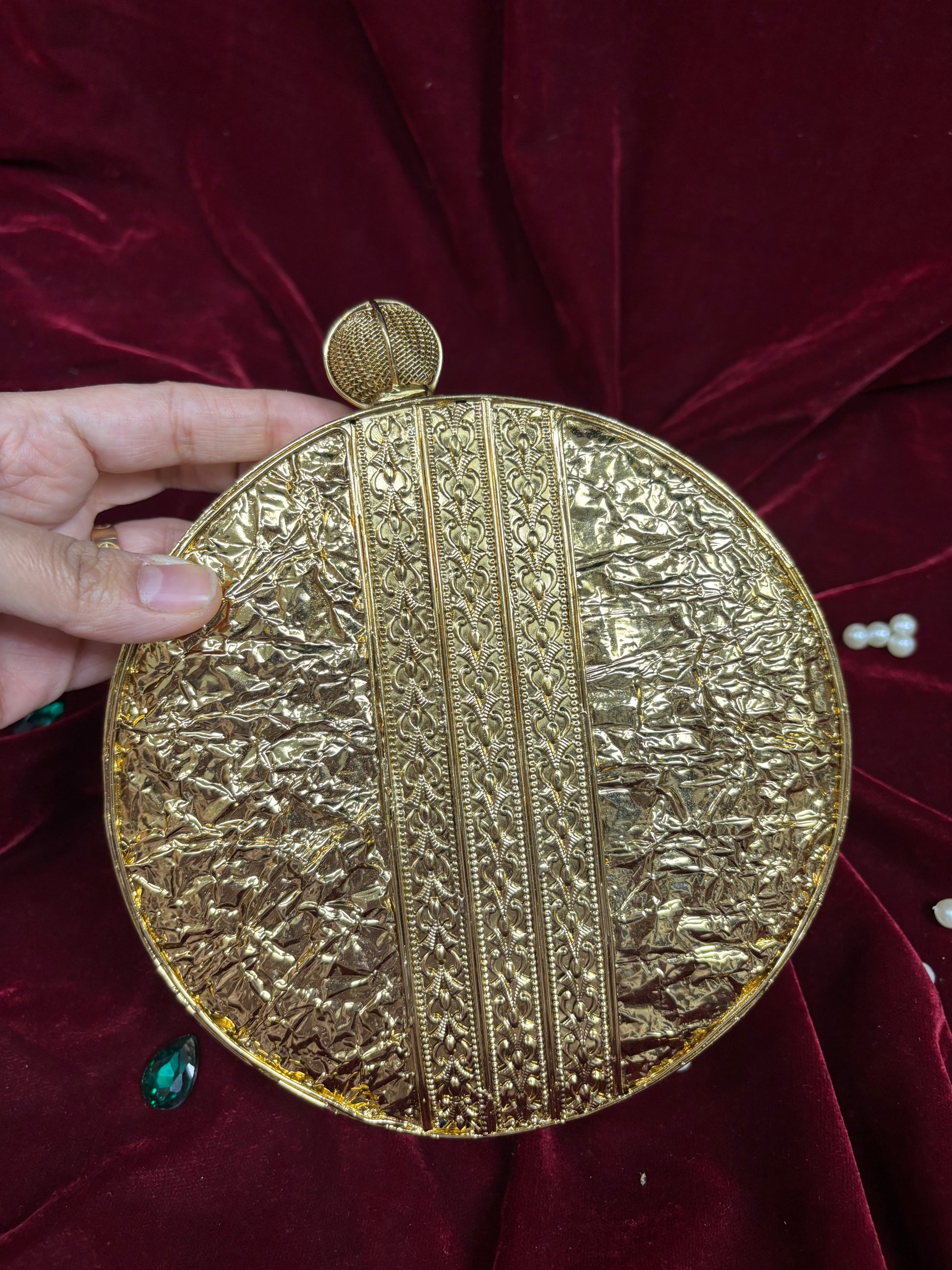 The Mother of Pearl Brass Clutch Bag is a premium handcrafted piece with a royal pearl shine and elegant brass detailing — perfect for weddings, parties, and festive looks. Lightweight, spacious, and designed to turn heads effortlessly.